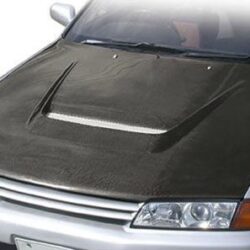 Cooling bonnet, composed of carbon for the Nissan BNR32 Skyline. Designed and manufactured by Varis. Cooling bonnet weighs 9.0kgs compared to the stock bonnet at 19.0kgs.VBNI-105