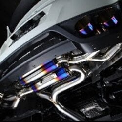 Amuse R1 Titan Extra STTI Titanium Exhaust System for the R35 Nissan GT-R features an 80mm main pipe, with 70mm piping from the mufflers to the tips, and 130mm exhaust tips (tails).
